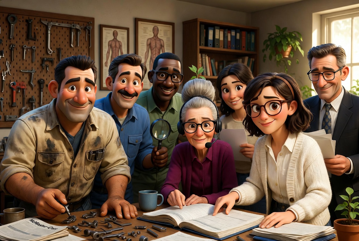 Six specialists. One ornery manager. Seventy-nine reference volumes. Zero making things up.
